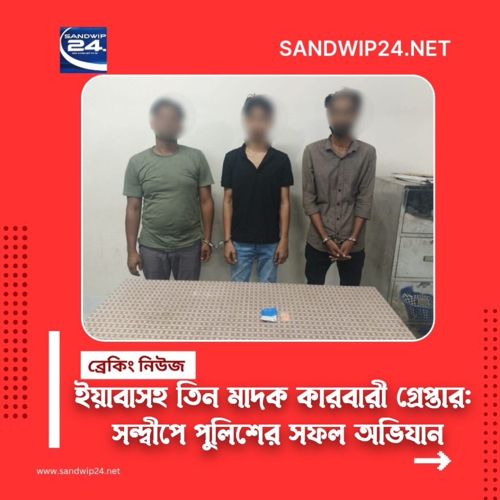 ইয়াবাসহ তিন মাদক কারবারী গ্রেপ্তার: সন্দ্বীপে পুলিশের সফল অভিযান